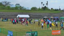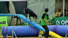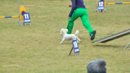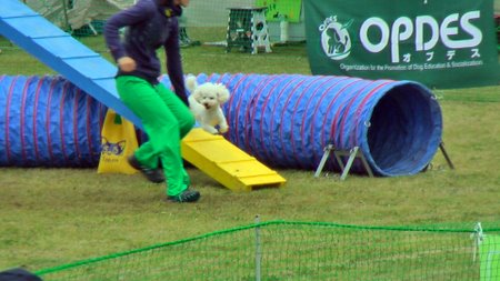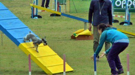 曇り空の下、飼い主さんもワンちゃんも楽しそうに競技をこなしていました。