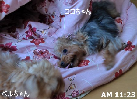 コロちゃんとまだ遊びたっかたベルちゃん。 ちょっぴり悲しそうです